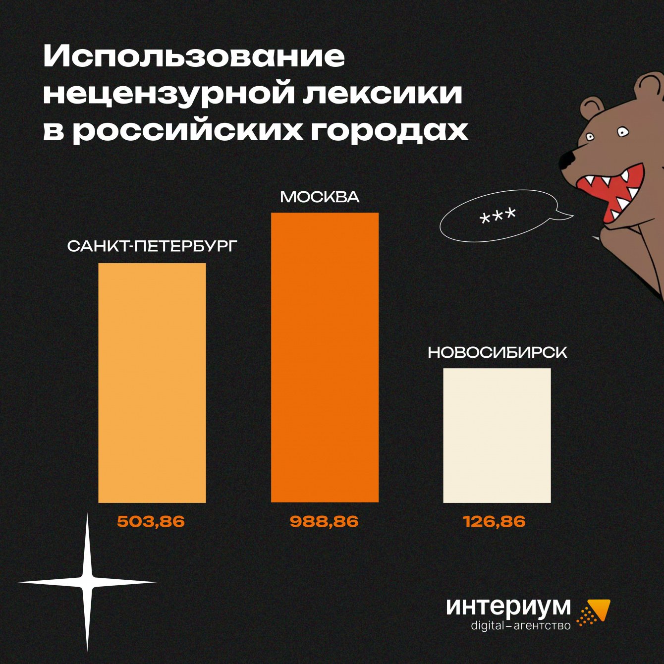 В текущем году эксперты агентства отметили значительные изменения. По сравнению с прошлогодними результатами, рейтинг лидеров по количеству нецензурных выражений пополнили мегаполисы и крупные города, которые вытеснили менее населённые пункты, ранее занимавшие верхние строчки. Москва возглавила рейтинг самых матерящихся городов России, по данным агентства «Интериум».