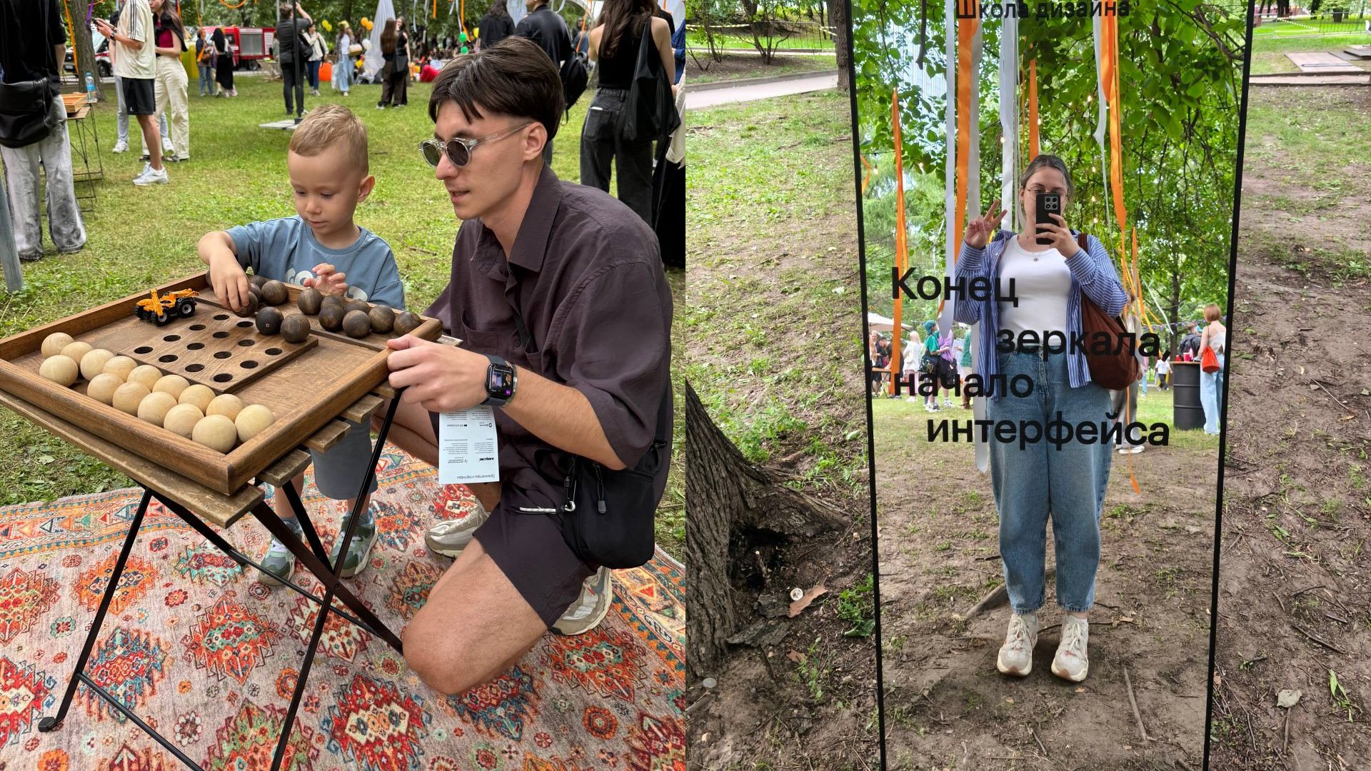 На дизайн-пикник выбрались Даня вместе с маленьким Саввой и Настя. Как оказалось, даже с коляской можно быть в центре событий и успевать прокачиваться.