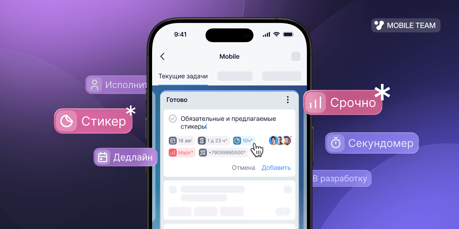 Открываете форму новой задачи — в ней уже отображены обязательные и рекомендованные поля, которые заданы в веб-версии. Задача не сохранится, пока вы их не заполните. Такой подход исключает пропуск важных атрибутов и поддерживает порядок в оформлении.
