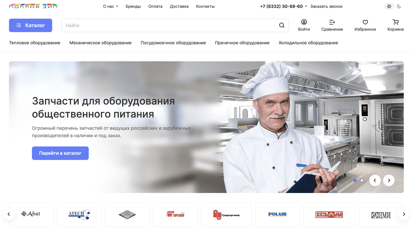 Текущий клиент пришел к нам по рекомендации, стояла задача запустить интернет-магазин по продаже запчастей для пищевого оборудования. Клиент разбирается в этой тематике, но совершенно не разбирался в сайтах и продвижении через интернет.