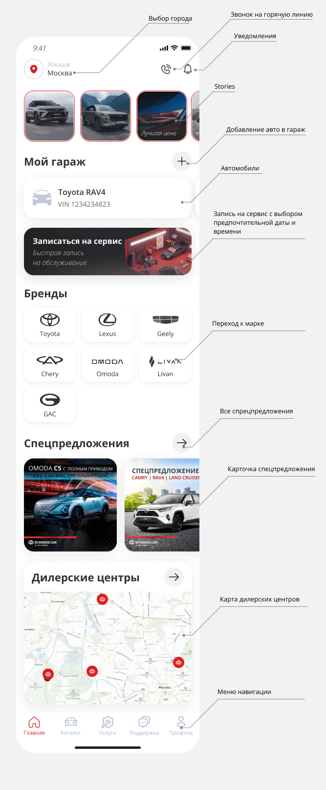 Пуш-уведомления о статусах обслуживания автомобиля;