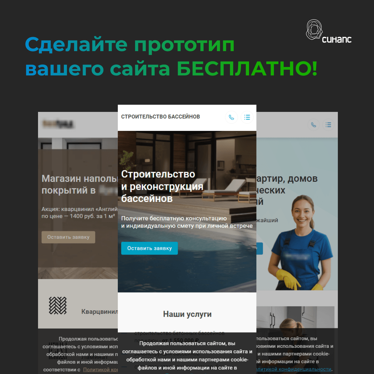 Теперь вы можете увидеть, как будет выглядеть ваш сайт-визитка еще до покупки. Просто ответьте на 6 простых вопросов о себе или своей компании, и получите прототип будущего сайта. Если результат не устроит — смело пишите нам, мы обсудим вашу задачу более подробно.