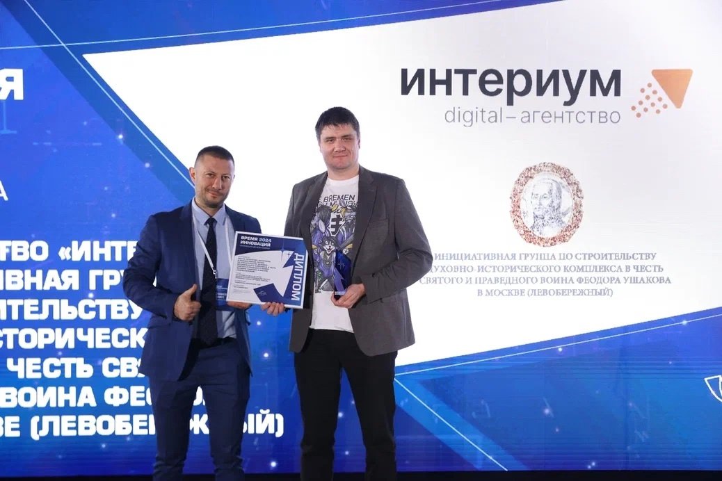 Digital-агентство «Интериум» и инициативная группа по строительству духовно-исторического комплекса в честь святого и праведного воина Феодора Ушакова в Москве (Левобережный) одержали победу в премии «Время инноваций» в номинации «Социальная инновация»!