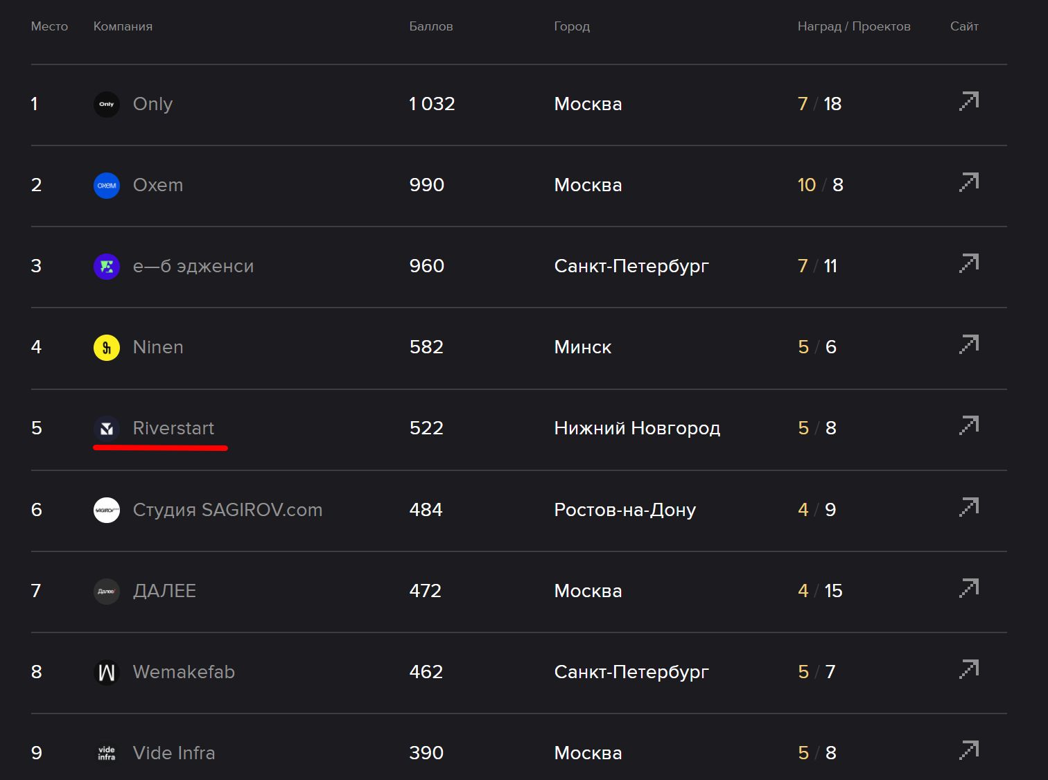Workspace опубликовали результаты медального зачета, где подсчитали совокупность всех достижений компаний в конкурсе Workspace Digital Awards. Учли общее количество проектов, поданных на конкурс, вхождение в шорт-листы и призовые места с разным «весом».