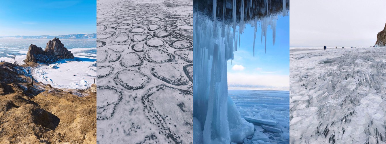 Зимой лед Байкала превращается в художественную галерею: гигантские трещины, пузырьки замерзшего воздуха, кристально чистая поверхность — словно генеративный арт, созданный самой природой. Эти узоры легко представить в графическом дизайне, вебе и даже анимации.