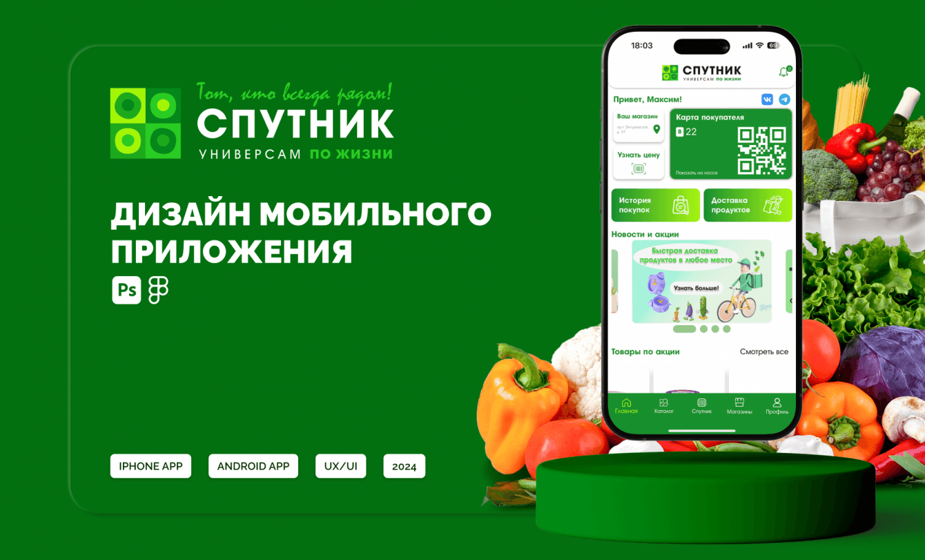 Представляем вам кейс по разработке дизайна мобильного приложения для сети магазинов «Спутник» в Саратове.
